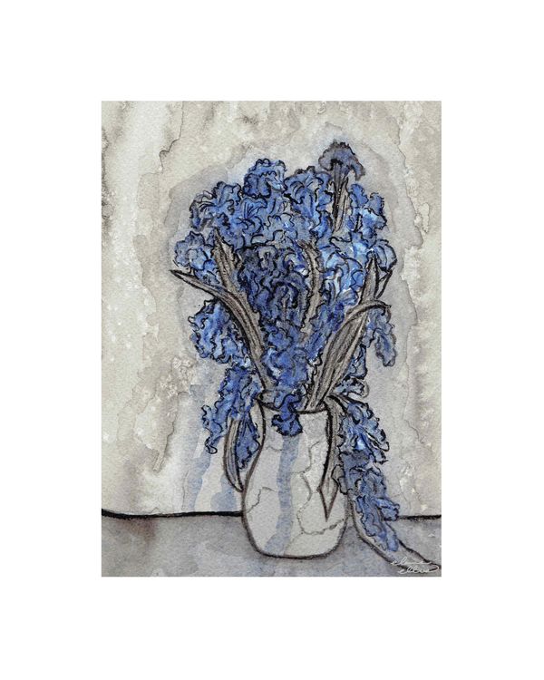 Ten different prints are available. Please view the artwork in The Space Between Us Collection and specify: poppies, irises, phones, swings, broken shells, conch shell, portrait, open door, open cage, or keys in your order.